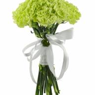 С оригинальным и небанальным букетом будет вовсе не стыдно прийти на первое свидание к девушке. Напротив, она оценит выбор и обрадует вас своим положительным ответом. Невинность цветочной композиции превосходно подчеркивает белая атласная лента. Букет из нежно-салатовых гвоздик можно преподнести и ребёнку – он вызовет неподдельный детский восторг.